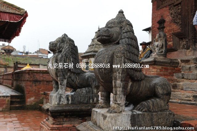 帕特王宮廣場匯集了眾多風(fēng)格古樸的寺廟和石雕。眾石獅們?cè)诟髯缘膷徫簧先找故匦l(wèi)著馬拉國王的古代宮廷,黑天神廟,加格納拉揚(yáng)神廟,帕特國王雕像柱和黃金廟。尤其是廟克里希納廟、也稱黑天神廟,處在王宮廣場的核心位置,供黑天神,建于1667年,由于是王室所建,規(guī)模自然比普通神廟大一些,氣勢(shì)上勝一籌。所以從外觀上就可以看到,整個(gè)神廟坐落在高臺(tái)基之上,主殿的圣所正上方,聳立著一座有21個(gè)鎦金塔頂?shù)闹窆S狀塔頂,塔亭的欄桿間,栩栩如生的雕刻著印度古典史詩《摩坷婆羅多》和《羅摩衍那》的圖像、神像和鳥獸。除塔頂外完全用石頭建成,遠(yuǎn)遠(yuǎn)望去,像是一件精美的石雕工藝品。這是尼泊爾建筑藝術(shù)的奇跡,而這樣一座偉大的建筑,竟完全不用圍墻,也沒有手持武器的衛(wèi)兵。那么,誰來護(hù)佑她的安全呢?自然是石獅子了。門前一個(gè)獅子衛(wèi)隊(duì),那叫一個(gè)威武啊,就算是牛鬼蛇神壞人也沒有敢起歹心的。