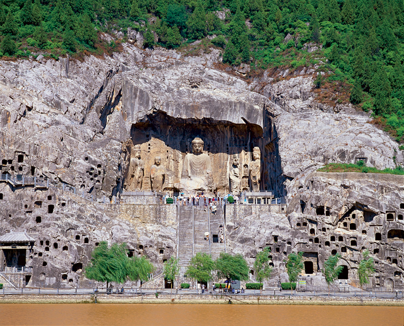 不論在云岡、敦煌,還是龍門,幾乎每一洞窟內(nèi)的雕繪都組成一個(gè)相互呼應(yīng)、相互關(guān)聯(lián)的完整世界。塑像是石窟的主角,一般本尊佛像呈現(xiàn)為圓雕形式。其背光與身光的圓形或蓮瓣形光環(huán)繪于或浮雕于身后龕壁上。本尊佛兩旁的弟子、菩薩等形象多以類似的圓雕形式表現(xiàn)出來(lái),而供養(yǎng)人的形象則多被繪在墻壁之上,龕楣繪有裝飾性的花朵或飛天,窟內(nèi)整個(gè)墻壁滿繪著佛教故事的情節(jié)、場(chǎng)面。形成有主有從、有襯托、有照應(yīng)、有節(jié)奏起伏、有微妙變化的統(tǒng)一的藝術(shù)世界,孤立地繪畫或孤立地看雕塑都不能理解其真正的內(nèi)容和意義。在這樣十種統(tǒng)一的藝術(shù)世界中,多種造型方法共同發(fā)揮著作用,表現(xiàn)出整體性的渾然氣勢(shì)。