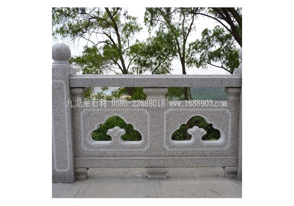 芝麻灰花崗巖石欄桿低欄高0.2~0.3米,中欄0.8~0.9米,高欄1.1~1.3米。欄桿柱的間矩一般為0.5~2米。更多樣式尺寸可訂做!