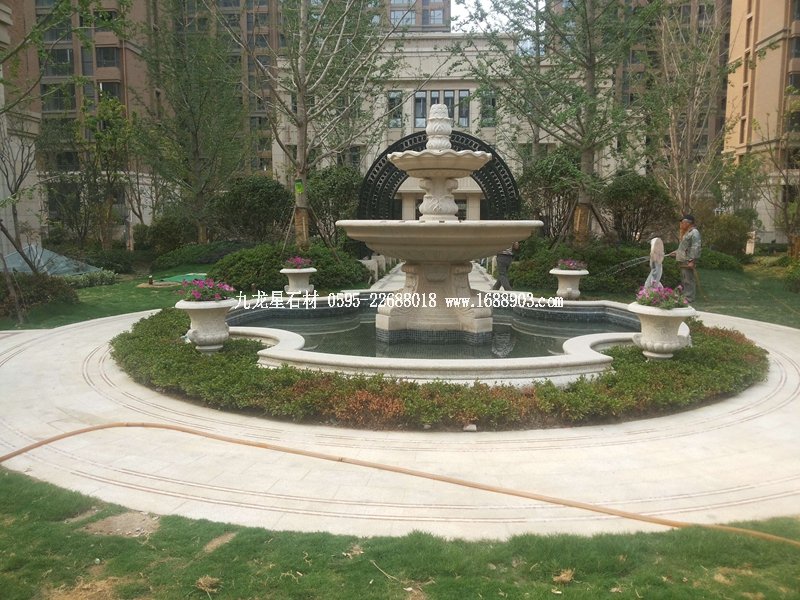 此跌水缽歐式雙層結(jié)構(gòu)造型,材質(zhì)為埃及米黃大理石。