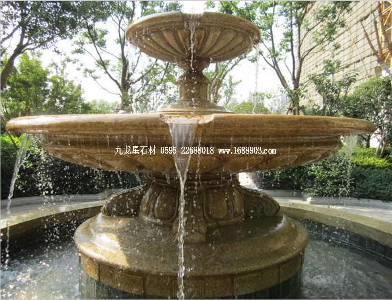 黃金麻石材水琺高2.2米,大缽盤直徑2米,雙層缽盤結(jié)構(gòu)。