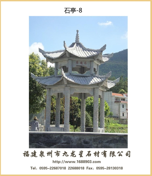 惠安石雕亭子的空間布局可以是三維的立體形態(tài),也可以兼?zhèn)淠撤N平面形態(tài);既可以依附于某種載體又可相對獨馬上存在.一樣平常地說來為得當(dāng)特定視點的撫玩必要或裝飾必要石雕亭相對圓雕的突出特征是經(jīng)形體壓縮處理懲罰后的二維或平面特性.