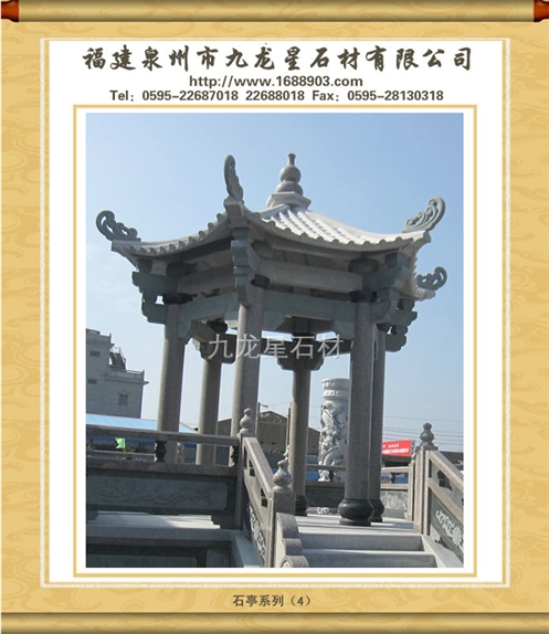 在我國(guó)園林中,特別是景觀設(shè)計(jì)中,幾乎都離不開(kāi)石材涼亭(也叫石亭子)。涼亭的特點(diǎn)是周圍開(kāi)敞,在造型上相對(duì)的小而集中,因此,涼亭常與山、水、綠化結(jié)合起來(lái)組景,點(diǎn)綴風(fēng)景成為設(shè)計(jì)中一大亮點(diǎn),因此涼亭的位置選擇顯得尤為重要,在不同情趣的自然環(huán)境中,沒(méi)有固定不變的程式可循,通常選在以下三種地形環(huán)境。