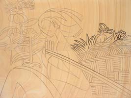 通常是以陰線或陽線作為造型手段的雕刻,不過石材方面主要是采用陰線方式來雕刻,所以也叫做沉雕。此類雕法吸收中國畫與意、重疊、線條造型散點(diǎn)透視等傳統(tǒng)筆法,石料經(jīng)平面加工磨拋光后,描摹圖案文字,然后依圖刻上線條,以線條粗細(xì)深淺程度,利用陰影體現(xiàn)立體感。此類產(chǎn)品多數(shù)用于建筑物的外壁表面裝飾,有較強(qiáng)的藝術(shù)性。 |