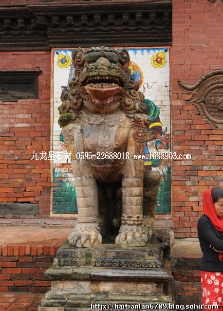 帕特王宮廣場(chǎng)匯集了眾多風(fēng)格古樸的寺廟和石雕。眾石獅們?cè)诟髯缘膷徫簧先找故匦l(wèi)著馬拉國王的古代宮廷,黑天神廟,加格納拉揚(yáng)神廟,帕特國王雕像柱和黃金廟。尤其是廟克里希納廟、也稱黑天神廟,處在王宮廣場(chǎng)的核心位置,供黑天神,建于1667年,由于是王室所建,規(guī)模自然比普通神廟大一些,氣勢(shì)上勝一籌。所以從外觀上就可以看到,整個(gè)神廟坐落在高臺(tái)基之上,主殿的圣所正上方,聳立著一座有21個(gè)鎦金塔頂?shù)闹窆S狀塔頂,塔亭的欄桿間,栩栩如生的雕刻著印度古典史詩《摩坷婆羅多》和《羅摩衍那》的圖像、神像和鳥獸。除塔頂外完全用石頭建成,遠(yuǎn)遠(yuǎn)望去,像是一件精美的石雕工藝品。這是尼泊爾建筑藝術(shù)的奇跡,而這樣一座偉大的建筑,竟完全不用圍墻,也沒有手持武器的衛(wèi)兵。那么,誰來護(hù)佑她的安全呢?自然是石獅子了。門前一個(gè)獅子衛(wèi)隊(duì),那叫一個(gè)威武啊,就算是牛鬼蛇神壞人也沒有敢起歹心的。