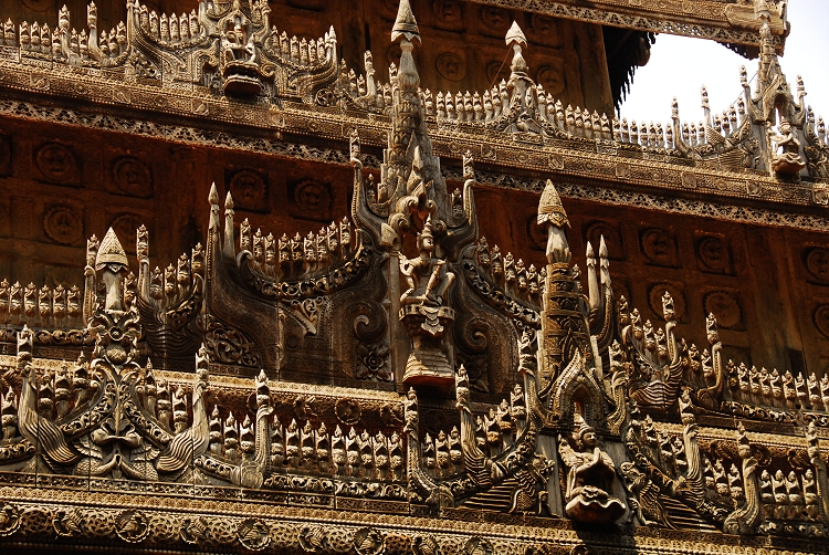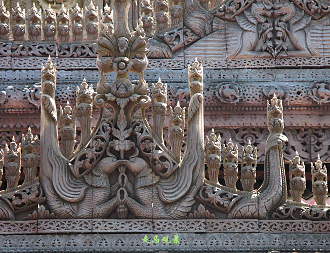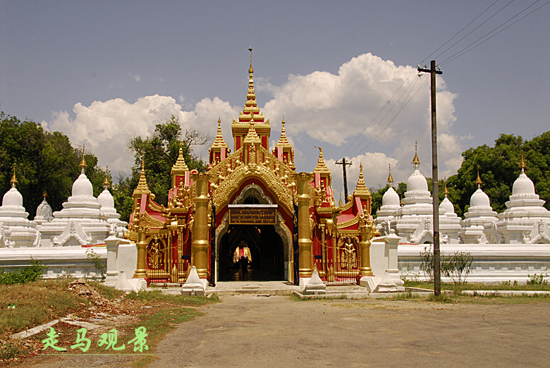阿都瑪希寺的大門,由白色大理石經(jīng)書圍繞著金光四射的寺廟大門。在修建廟宇的問題上,緬甸人是毫不吝嗇的。為什么人們會說緬甸是富饒中的貧困,原因也許就在此。緬甸人將一生的很多時光和財富都貢獻給了佛。