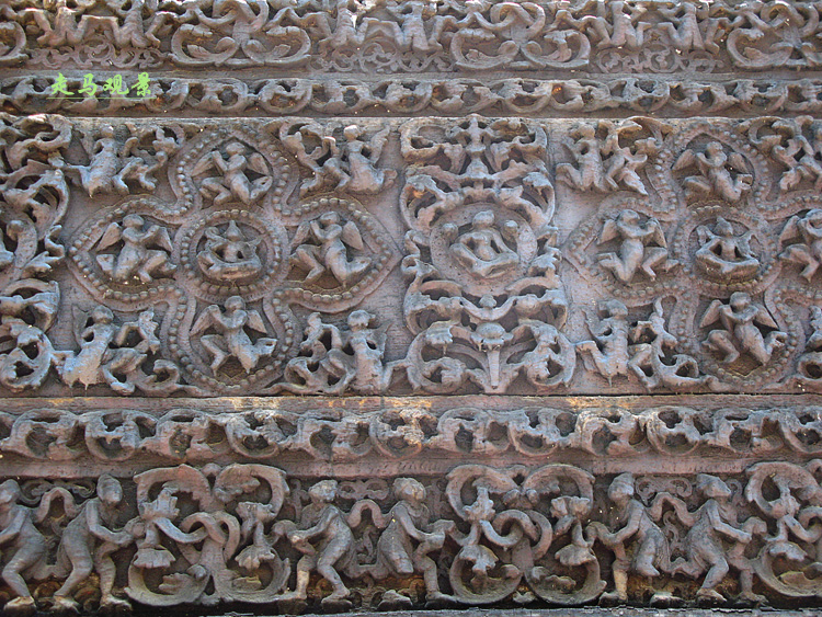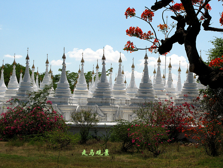 阿都瑪希寺廟里,由729塊大理石雕刻成的經(jīng)書,組成了整齊圣潔的佛塔,在陽光和鳳凰樹紅色花球的環(huán)繞中,看著這些潔白的石經(jīng),心里會有平靜浮起。