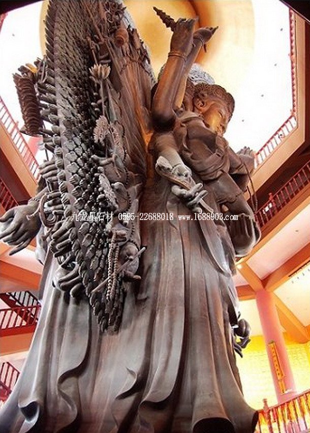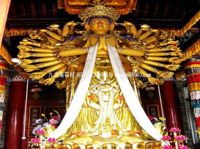 在中國這個信佛又不虔誠的半佛國度里,不少寺院里,包括西藏巴松錯扎西島上的錯宗工巴寺院里,都供奉有千手觀音雕塑像。千手觀音全稱:千手千眼觀世音菩薩。又稱:千眼千臂觀世音菩薩,是佛教中的六大觀音之一。