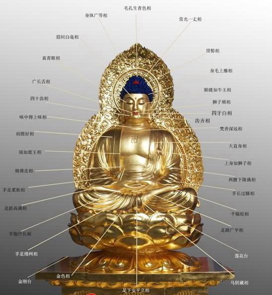 按照佛經(jīng)的說法,佛、菩薩之身所具足之殊勝容貌形相中,顯著易見者有三十二種,稱為三十二相;微細隱秘難見者有八十種,稱為八十種好。兩者亦合稱相好。