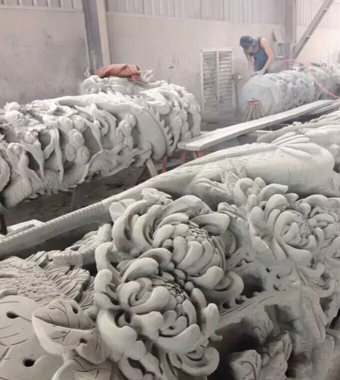 惠安南派石雕技藝精湛,歷代佳作紛呈,尤以青石龍柱雕刻為最突出。在南方眾多地區(qū)的寺廟、觀、宗祠等古建筑中較常見到,尤其福建、廣東、臺灣及東南亞地區(qū)。今天特意到雕刻車間給大家拍些傳統(tǒng)龍柱的制作現(xiàn)場,由于現(xiàn)場風塵較大,清晰度大受影響,大家勉強看吧。同行則共勉,其他朋友則了解。