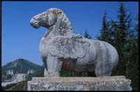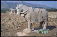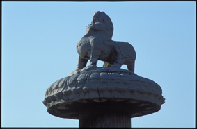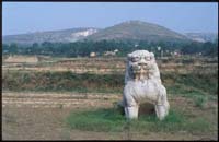 藏王墓位于西藏自治區(qū)瓊結(jié)縣,是公元七——九世紀(jì)歷代吐蕃贊普的墓葬群,現(xiàn)存石獅一對(duì)和石碑、柱等。造型除受中原影響外,樣式特征亦帶有波斯風(fēng)格影響。