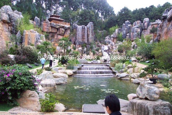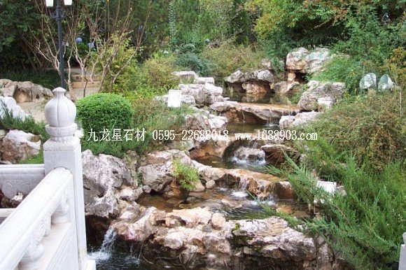 中國式的山石瀑布,一般瀑布口1~3米寬,可以用一塊仔細(xì)打磨的石板、砼板作溢水口。務(wù)必使溢水口融為山石的一部分,流瀑時好看,不流時也自然。在上海嚴(yán)寒的冬天,如果這里有少量滴水,那么隨著時間推移會滴水成冰,冰柱會越來越長。這也是園林景觀的一種冬態(tài)。