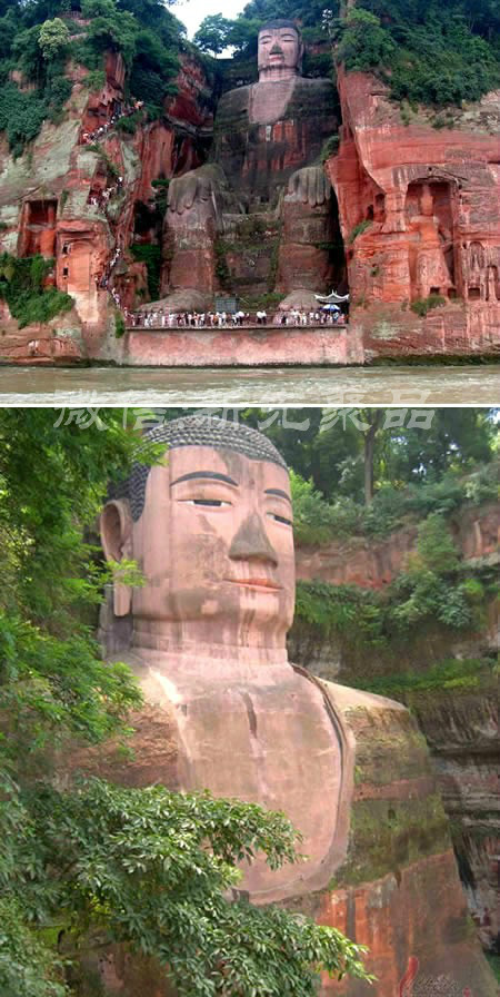 樂山大佛,地處中國四川省樂山市,岷江、青衣江和大渡河三江匯流處,建于唐朝時期。大佛雕像通高71米(約23000英尺),游客們就像小矮人一樣圍繞其四周觀看。其面向峨眉山矗立在三江的‘聚會場所’。過去的二十年,大佛飽受自然風(fēng)雨和污染的侵蝕。幸運的是,在2008年的四川大地震中大佛并沒受到損壞。