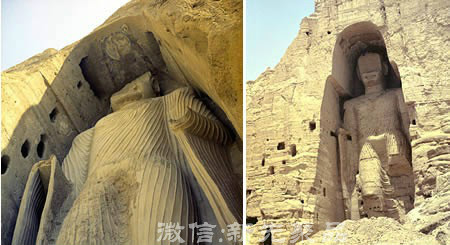 巴米揚佛像是被刻在懸崖邊上兩座站立著的紀(jì)念雕塑,其位于阿富汗中部哈扎拉賈特區(qū)的巴米楊大峽谷。處于距喀布爾西北230公里,高度2500米的位置。巴米揚大佛建于6世紀(jì),是印度希臘藝術(shù)混合的典型。這些雕塑主要是峭壁上的石頭鑿刻而成,具體是由藍(lán)本泥草混合并涂在表面。2001年,在塔利班政府宣布他們是當(dāng)?shù)氐摹枷瘛?伊斯蘭教法禁止的),塔利班領(lǐng)導(dǎo)人毛拉穆罕默德.奧馬爾的破環(huán)命令,巴米楊佛像遭到了塔利班的肆意轟炸。國際輿論強烈譴責(zé)對大佛的破環(huán)行為,塔利班也被視為伊斯蘭教旨主義無可容忍的例子。日本,瑞士,以及其他一些國家已承諾支持大佛的修復(fù)工程。
