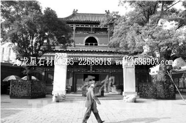進(jìn)入由三個拱形小門組成的“山門”,我們就可看到左右兩側(cè)的鐘樓、鼓樓。古代有“晨鐘暮鼓”之說,太陽東升西落,所以鐘樓和鼓樓分居?xùn)|、西兩側(cè)。坐北朝南的第一重大殿是“天王殿”,殿里正面供奉彌勒佛坐像,兩側(cè)為四大天王像。穿過天王殿是第二重大殿———“大覺寶殿”,迎面看到的是釋迦牟尼佛、藥師佛和阿彌陀佛。雖然第三重大殿“七寶像殿”中原來供奉的七尊佛像在“文革”間被破壞,但是現(xiàn)在供奉的移自護(hù)國寺的整樘楠木佛像,也頗具觀賞價值。