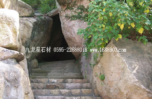 東天門,位于普陀山幾寶嶺的上(見圖),此門由幾塊巨石自然壘疊而成,門邊有一洞,宛如一間石室,稱為法華洞。法華洞不僅洞中有洞,泉水潺潺,原還建有法華洞庵和望旭亭,四周有“無畏石”、“一龜下山石”等許多奇巖怪石,自然景色十分優(yōu)美,曾為普陀山十二勝景之一。1981年法華洞庵和望旭亭相繼被毀后,此勝跡一直荒蕪著。2000年7月,普陀山佛教協(xié)會(huì)投入1000多萬元,在法華洞旁新建了園林式的妙公紀(jì)念堂,東西碑亭,法華樓等新景觀和設(shè)施,總建設(shè)面積為700多平方米,其中妙公紀(jì)念堂建筑面積為200多平方米。此堂建筑材料特點(diǎn)以石為主,堂頂為石瓦,石斗拱,中間為石柱子,堂前為石雕欄桿,整座建筑宏偉壯觀,景色誘人。據(jù)傳,東天門是東海龍王拜見觀音的出入之門。