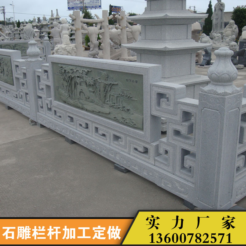 5.石雕欄桿的作用:目前石欄桿已經(jīng)成為傳統(tǒng)建筑最常見的組成部分,可以有效避開踩空危險的情況。當前石欄桿被廣泛適用于市政、水利、公園、交通橋梁 、環(huán)城護河、別墅裝修、等護欄工程,從而給人們的生活增添了無限的便利性,起到圍護圍欄的安全保障作用。在園林建筑場所內(nèi)起到不可或缺的重要地位作用,仿石欄桿起到隔離空間區(qū)域的效果作用。同時還有著美觀、時尚、環(huán)保、抗老化、不變形的性能優(yōu)點。