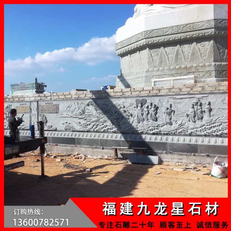 規(guī)格尺寸:6.3米千順將軍,88米梅蘭菊竹欄桿,120平媽祖神話故事浮雕