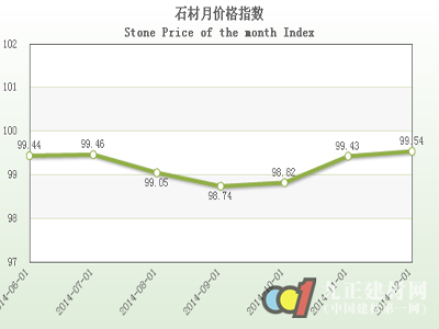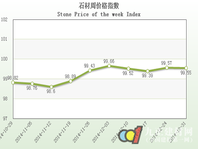 從12月石材周價格指數走勢圖看,本月石材周價格指數呈現小幅波動調整、但總體趨于穩(wěn)定。