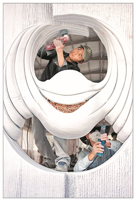 ——精湛技藝踏遍山河。在對惠安“世界石雕之都”的命名函中,世界手工藝理事會如是寫道:“惠安已成為國內(nèi)外產(chǎn)業(yè)規(guī)模最大、工藝水平最高、產(chǎn)品種類最齊全、加工能力最強的石雕石材工藝品生產(chǎn)加工與出口基地?!迸c之相映生輝的,是惠安雕藝工匠們踏遍祖國山河,將作品和技術(shù)傳揚至海內(nèi)外。此次攝影展中,就有不少攝影家們赴外地采風,用鏡頭將大江南北的惠安雕藝精品力作,仔細珍藏,拍下了《長沙青年毛澤東雕像》、《中央革命根據(jù)地歷史博物館大型浮雕(江西省瑞金市)》、《沙縣淘金山舍利塔》等佳作。而《傳統(tǒng)石雕龍柱》更攝下臺北龍山寺、福州定光寺、安溪文廟、晉江安海龍山寺、泉港峰尾東岳廟、泉港沙格靈慈宮等多個寺廟的龍柱,拼為組圖,集中展現(xiàn)惠安石匠們的精湛技藝。