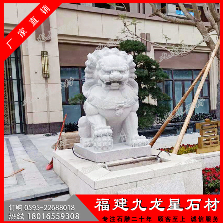 門前石獅子在民間又稱“石獅子”,石獅子是用天然石材所雕刻出來的獅子,以大理石、青石、漢白玉、花崗巖等為材料,以圓雕為主要造型手法,是在中國傳統(tǒng)建筑中經(jīng)常使用的一種裝飾物。石獅子威風(fēng)凜凜,威猛霸氣,鎮(zhèn)魔驅(qū)煞,祁佑生財。中國漢族傳統(tǒng)文化中石獅子是常見的辟邪物品之一。在中國的宮殿,寺廟,佛塔,橋梁,府邸,園林,陵墓,以及印鈕上都會看到石獅子。最早的石獅子是東漢時高頤墓前的石獅,以天然石材為原材料而雕塑成石獅子,具有藝術(shù)價值和觀賞價值。