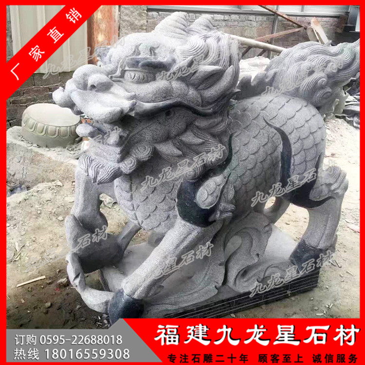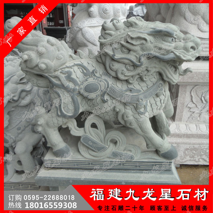 石刻麒麟是中國(guó)傳統(tǒng)工藝品之一。民間認(rèn)為麒麟有鎮(zhèn)宅辟邪,增添家中吉祥的作用。石刻麒麟是古代的仁獸,集龍頭、鹿角、獅眼、虎背、熊腰、蛇鱗、馬蹄、豬尾于一身,乃吉祥之寶,從古到今都是公堂上的裝飾,以振官威之用,也是權(quán)貴的象征。 福建惠安有著極為豐富的石材資源,用**天青墨玉、霞玉、緬甸玉、漢白玉、墨玉、佘太玉、砂巖、大理石、花崗石、銀灰白石、雪花白等石材玉料雕刻石刻麒麟。