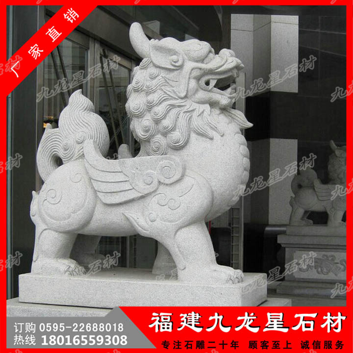 銀行門(mén)口石雕貔貅是指用優(yōu)質(zhì)天青墨玉、霞玉、緬甸玉、漢白玉、墨玉、佘太玉、砂巖、大理石、花崗石、銀灰白石、雪花白等石材玉料,雕刻成各類(lèi)藝術(shù)用品和擺件的貔貅。一般采用圓雕,透雕,線雕,平雕,浮雕,畫(huà)雕,影雕等多種工藝雕刻。