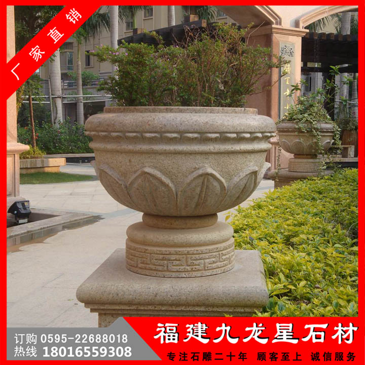 石材石雕花缽,不易磨損,不易污染土壤,不易污染環(huán)境,石材花缽的材質有多種,有大理石花缽、花崗巖花缽等。
