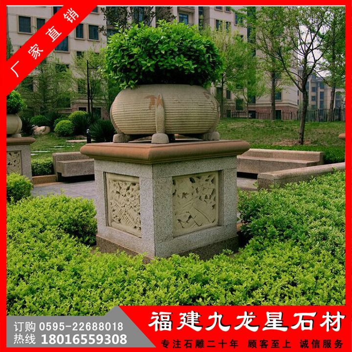 花缽石雕文化在中國(guó)的歷史上,有著很輝煌的歷史,它的美一直傳承到了現(xiàn)在,不僅是視覺(jué)上的享受,也是一種文化的熏陶!它采用天然石頭精雕細(xì)琢而成的石雕花缽。形態(tài)逼真,栩栩如生。適用于小區(qū),廣場(chǎng),園林,酒店,學(xué)校,戶(hù)外園林景觀工程等場(chǎng)所。