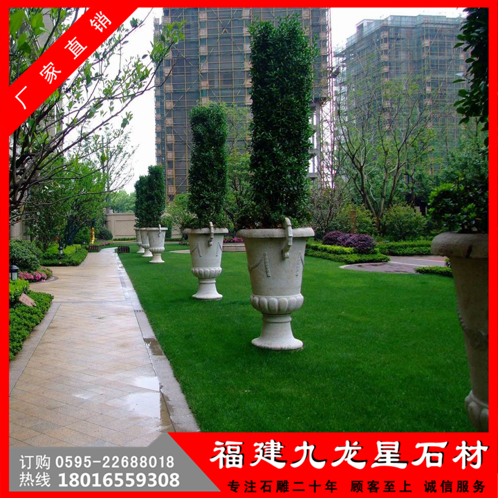 石雕花缽靈活多樣,隨處可用,尤其對(duì)于城鄉(xiāng)建筑比較密集和其他一些難于綠化地區(qū)的美化,有著特殊的意義。美化環(huán)境時(shí),可根據(jù)缽、盆樣式、大小的不同,進(jìn)行多種多樣的藝術(shù)組合。組合的形式可以是幾何式、自然式、混合式、集中布置、散置等,具體布局形式要由美化地點(diǎn)的具體情況決定。在較寬敞的地方,如廠前區(qū)、廣場(chǎng)、大型建筑門(mén)前、道路交叉口、停車(chē)場(chǎng)等處,可布置為樣式多變、五彩繽紛的小花壇,在商店、住宅的門(mén)前可隨機(jī)點(diǎn)綴一二。
